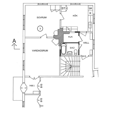 Tvårumslägenhet i charmiga Mariannelund – ljus, karaktär och bevarade kakelugnar